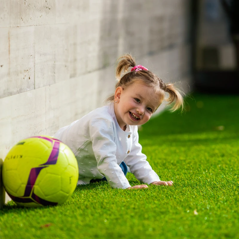 Szülőként az első kérdésed jogosan az: biztonságos-e a gyerekemnek? A válaszunk nem ígéret – hanem tanúsítvány. A prémium holland műfűveink kizárólag EU szabványoknak megfelelő anyagokból készülnek – károsanyag-mentesen, hippoallergén összetétellel. A fűszálak selymesen puhák: a gyerekek hempereghetnek, hason fekve olvashatnak, mezítláb szaladgálhatnak – bőrirritáció és allergia kockázata nélkül. Az antibakteriális tulajdonság gátolja a felszínen a baktériumok szaporodását, a hipoallergén anyagösszetétel pedig azt jelenti: nincs pollen, nincs allergia, szabad légzés egész évben. Az esés? Puha talajra érkezik – nem betonra, nem kavicsra. Eső után 15 perccel már száraz a felszín, sármentes és tisztán tartható – soha többé sáros lábnyom a házban. A gyerekeid egyébért szaladnak be: mert éhesek, nem mert piszkosak.